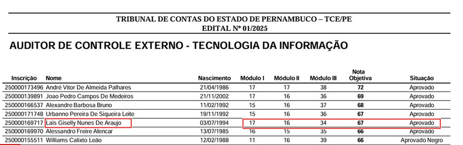 Apesar do inquérito em andamento, Laís continua a se destacar nas listas de aprovados, desta vez garantindo uma vaga de alto salário no serviço público estadual, consolidando seu nome entre os candidatos mais comentados do país